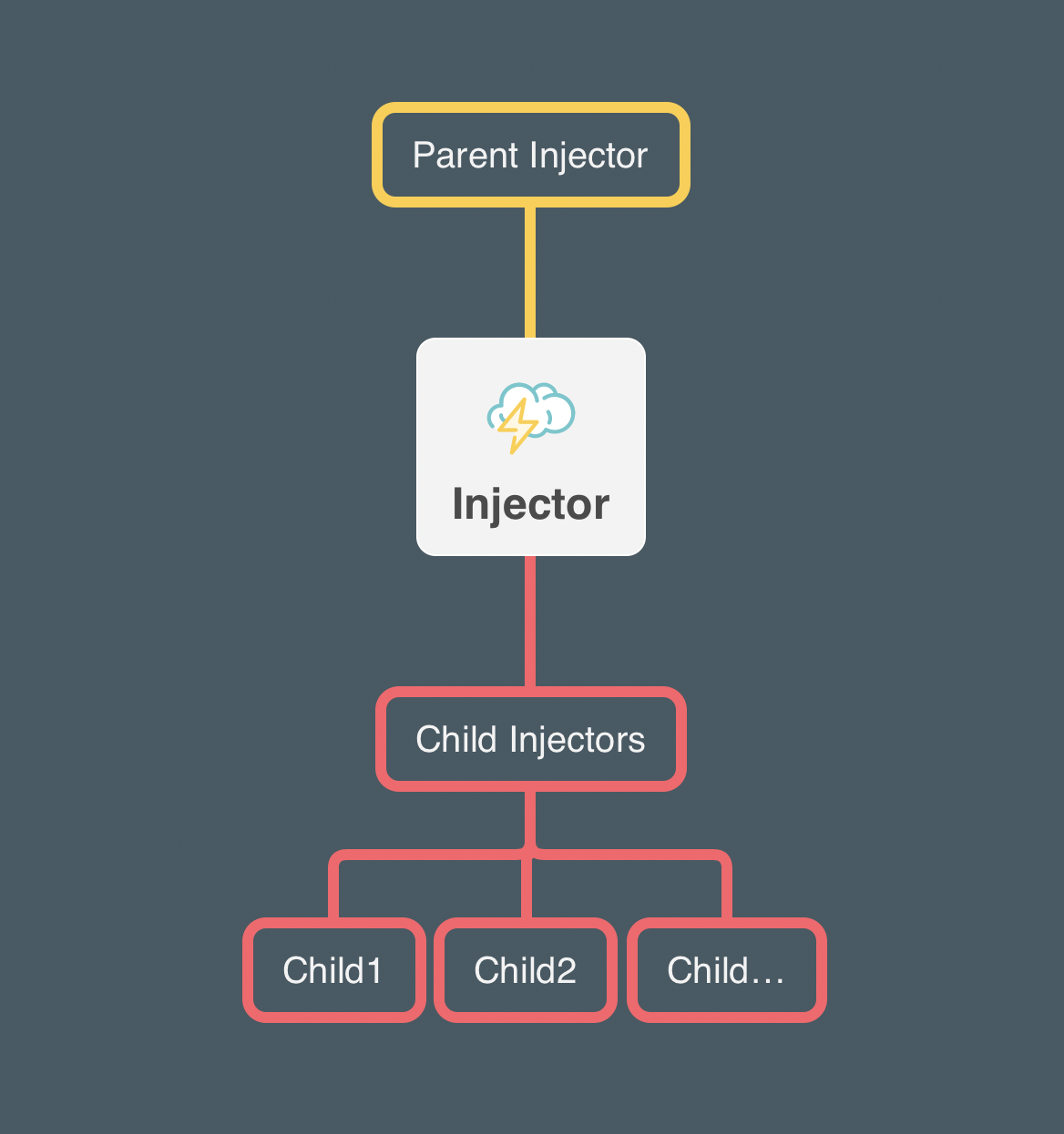 Every injector has the capability to store an ordered collection (ordered struct) of child injectors via the childInjectors property. Child injectors are used internally in many instances to provide a hierarchical approach to DI where instances can be searched for locally, in the parent and in the children.
