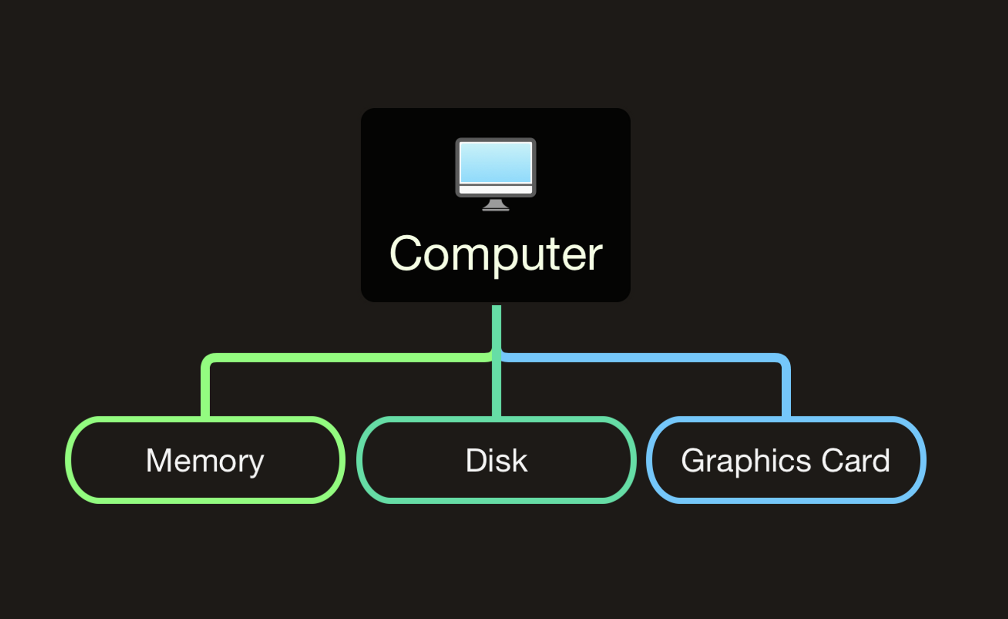 A `Computer` is made from many parts, and each part does one thing really well. If you want to render something on the screen, the computer tells the graphics card and lets the card do its job. It tells it what to do but not **HOW** to do it. That’s **composition**. You wouldn’t want a computer to extend from a graphics card, or memory or a disk, right? You use them in orchestration. But what if you wanted to give the public access to the memory or graphics card? Or maybe log all calls to the memory module? You would have to build some bridge right, a proxy, a way to access those methods and delegate. So let’s explore how to do this manually: